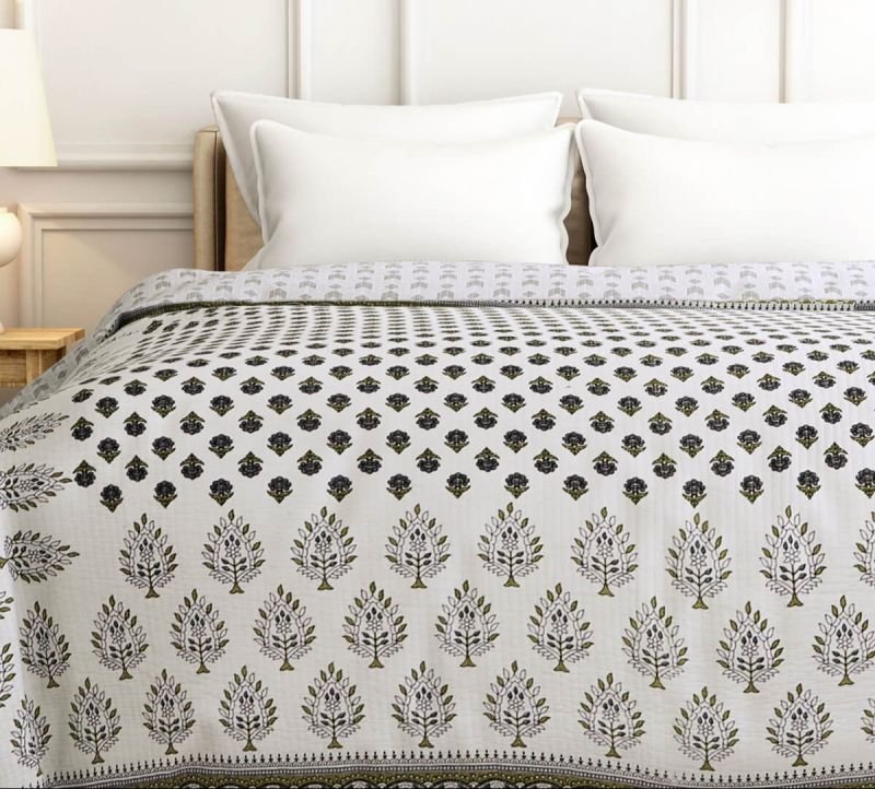 The Quilted Bed Cover (Double Size) is made from high-quality cotton fabric, offering both comfort and durability. The quilted design provides extra warmth and a cozy feel, making it perfect for cooler nights. This bed cover is designed to fit double-sized beds, offering ample coverage to protect your bedding while adding a touch of elegance to your bedroom. The soft cotton material ensures breathability, keeping you comfortable throughout the night. It is also easy to maintain and machine washable, making it a practical yet stylish choice for everyday use. The intricate quilted pattern enhances its aesthetic appeal, adding texture and style to your home decor.